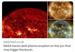 بر اساس این خبر ناسا یک فوران پلاسمای تیره روی خورشید را ثبت کرده است که به احتمال ۶۰درصد باعث #خاموشی_زمین در این هفته میشود.