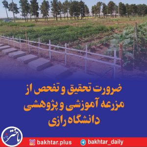 «مزرعه آموزشی و پژوهشی دانشگاه رازی »، با ۳۰۰ هکتار زمین آبی مرغوب یکی از بزرگترین سرمایه های بالقوه و اصلی ترین منبع درآمدی دانشگاه رازی می باشد. اما متأسفانه در چند سال اخیر، خصوصا از ابتدای سال ۱۴۰۲ و ۱۴۰۳ و با تغییر مدیریت و انتشار گزارش هایی در خصوص کشت های ممنوع، غیر […]