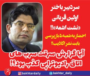 به گزارش باختر، دانشگاه علوم پزشکی کرمانشاه از هادی نوروزی، سردبیر روزنامه باختر بابت انتشار گزارش سرقت قالبهای سربی اتاق رادیوتراپی بیمارستان امام رضا (ع) و تحت عنوان «نشر اکاذیب» شکایت کرده و پرونده ای در شعبه ۵ بازپرسی دادسرای عمومی و انقلاب کرمانشاه تشکیل داده است.